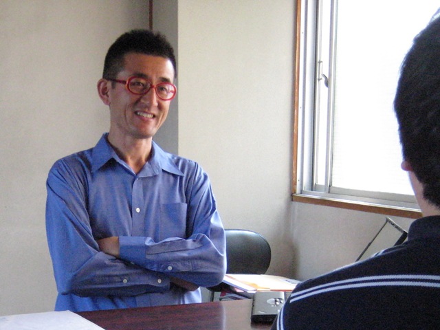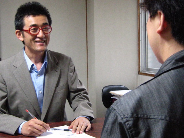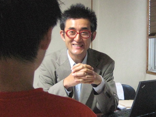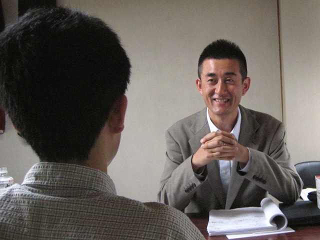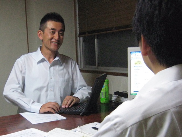 タオルハンカチで汗をぬぐいながら、毎日毎日面接指導!