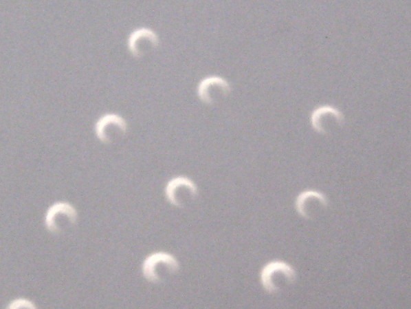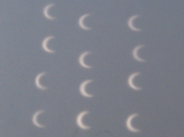 上の2枚はピンホールの写真なんですが、ごらんのとおり完全な金環日食になっていません‥