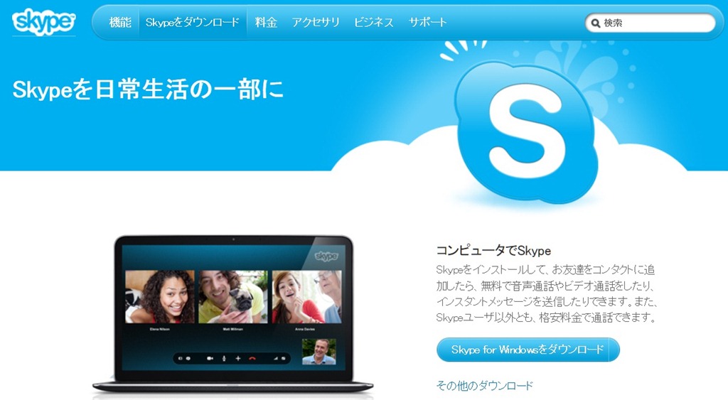まずはスカイプのサイトに行かれてダウンロードをお願いします。(無料)