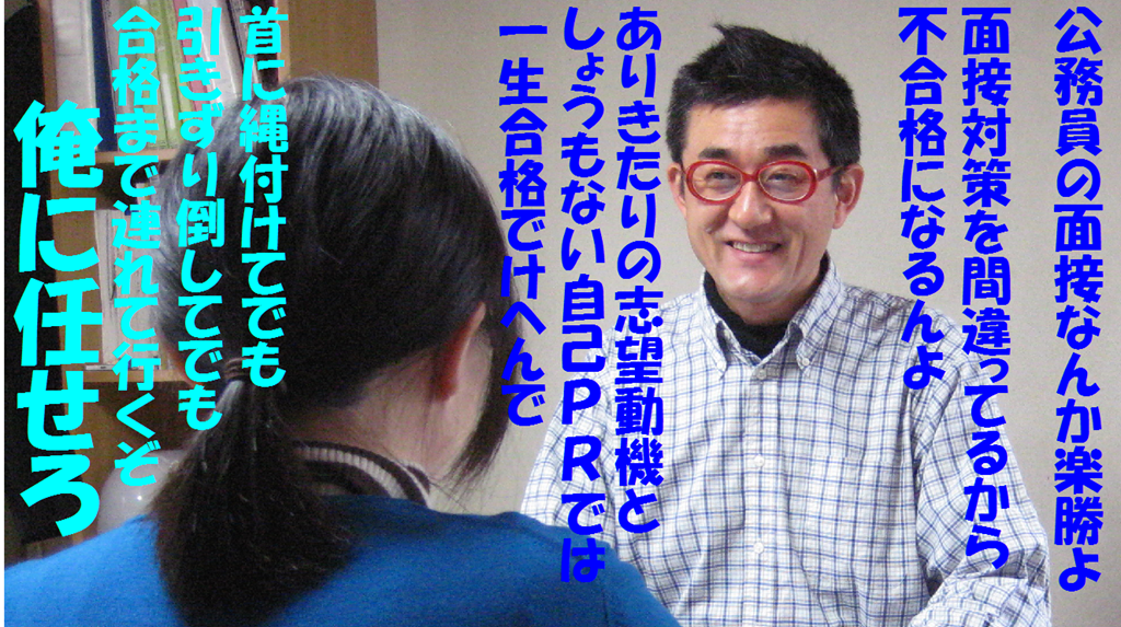 447名合格の最強指導力で君も面接に合格だ。面接地獄脱出で来年は公務員だ。志望動機も長所短所も趣味特技も全部作ったる。遠隔指導もやってるで。ウザイぐらい熱血の面接職人松田佳久に全部任せろ。