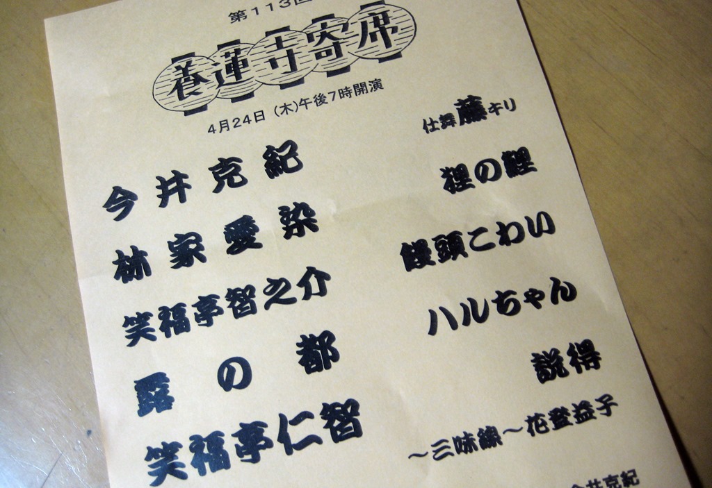 先週のことですが、養蓮寺寄席に行ってきました。