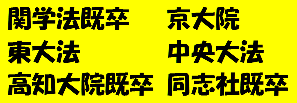 関学法既卒、京大院生、東大法、中央大法、高知大院既卒、同志社既卒の6名。