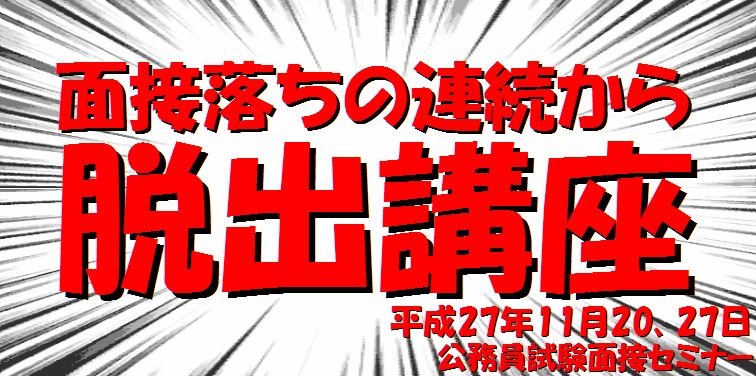 この講座を受講すれば面接落ちの連続から脱出できます!来年4月から晴れて公務員として働くことができます!開催日は11月20日と27日です!面接落ちの悔しさと苦労から抜け出せる!
