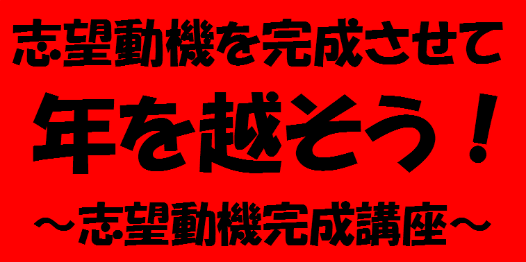 志望動機作ってから年を越せ!そもそも志望動機もなしに筆記対策なんてできるはずねえだろ!俺が君の志望動機を作る!最強志望動機の完成じゃあ!志望動機完成講座は12月17日(木)