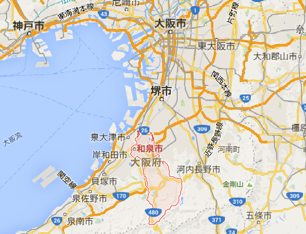和泉市は知名度がイマイチ‥、場所は堺のお隣です ↓ ↓ ↓ ↓。