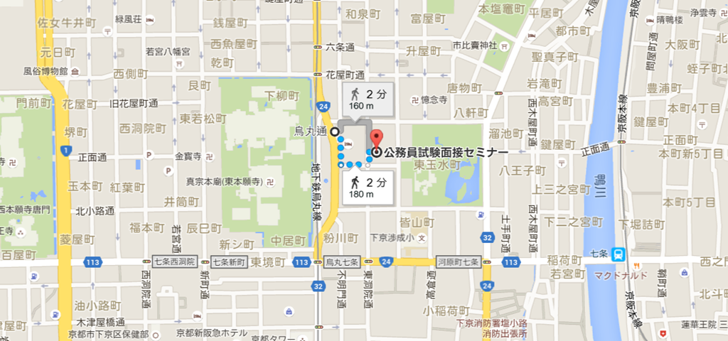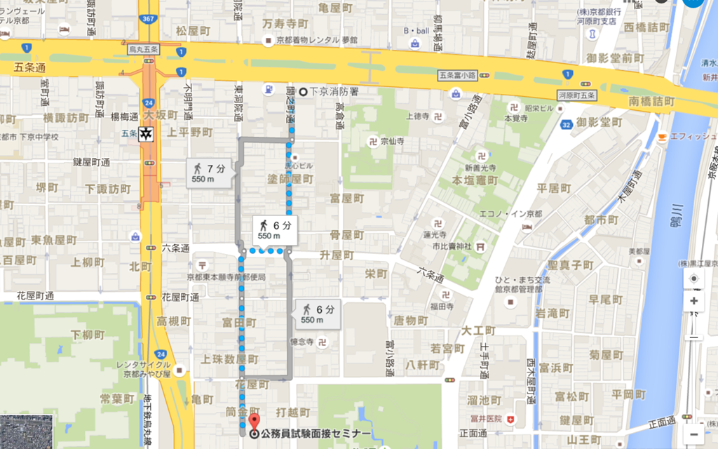 公務員試験面接セミナーから北へ上がったところに下京消防署があります(^_^)/