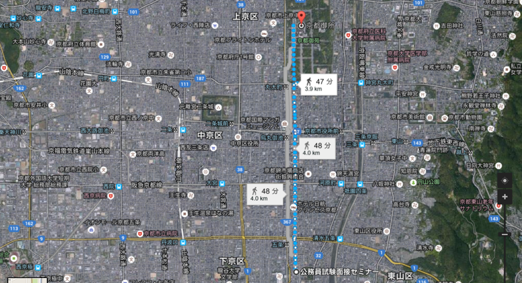 当セミナーから北へまっすぐ。東洞院通をま~っすぐ上がれば御所に到着どえす。