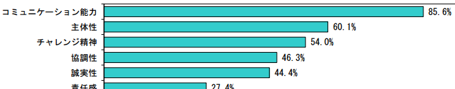 企業が求める能力に関する調査データでは、コミュニケーション能力がいつもトップ。