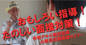 447名合格の最強指導力で君も面接に合格だ。面接地獄脱出で来年は公務員だ。志望動機も長所短所も趣味特技も全部作ったる。遠隔指導もやってるで。ウザイぐらい熱血の面接職人松田佳久に全部任せろ。