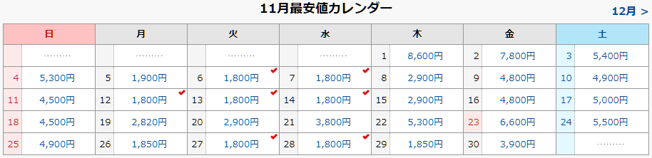 福岡から京都だと、3600円から。