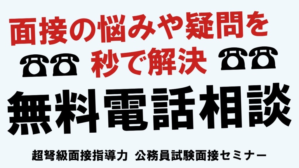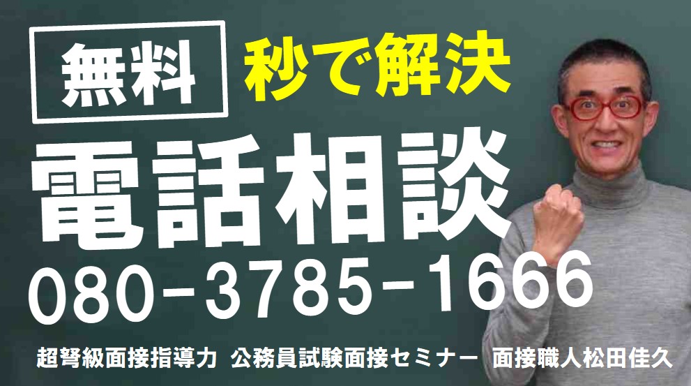 面接の悩みや疑問が速攻で解決できます。モヤモヤがスッキリして晴れ晴れとした気分になれます。ヤル気がメラメラ燃え上がります。今すぐ電話して下さい。それが公務員への第一歩、面接合格への第一歩です。